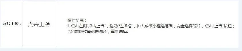 7、照片上傳:【點擊上傳】選擇你的照片保存路徑(提示:近期淡藍色,白色或紅色背景,免冠無頭飾正面一寸證件照片,小于200KB,jpg格式),網報上傳的照片必須與體檢表、現(xiàn)場提交資料時上交的照片為同一版)移動選框裁剪合適照片。