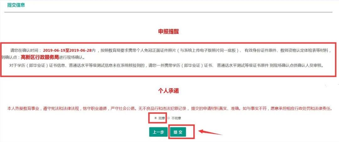 11.很重要的提示,個人承諾,點擊【同意】點擊【提交】